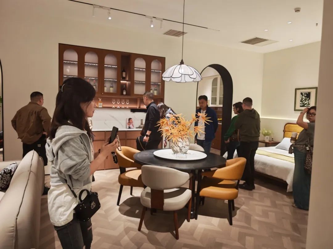 新品发布品鉴会现场,bwin必赢中古全案凭借独特的空间布局,创新的时尚设计,优质的材料细节以及精心的场景营造,吸引了全国优秀经销商及业界嘉宾们的目光,他们沉浸在高级的美学世界里,感受创新与品质交织的魅力。bwin必赢中古展厅里人潮涌动,众多经销商都对中古全案新品的创新设计称赞有加,现场签约不断,气氛热烈。
